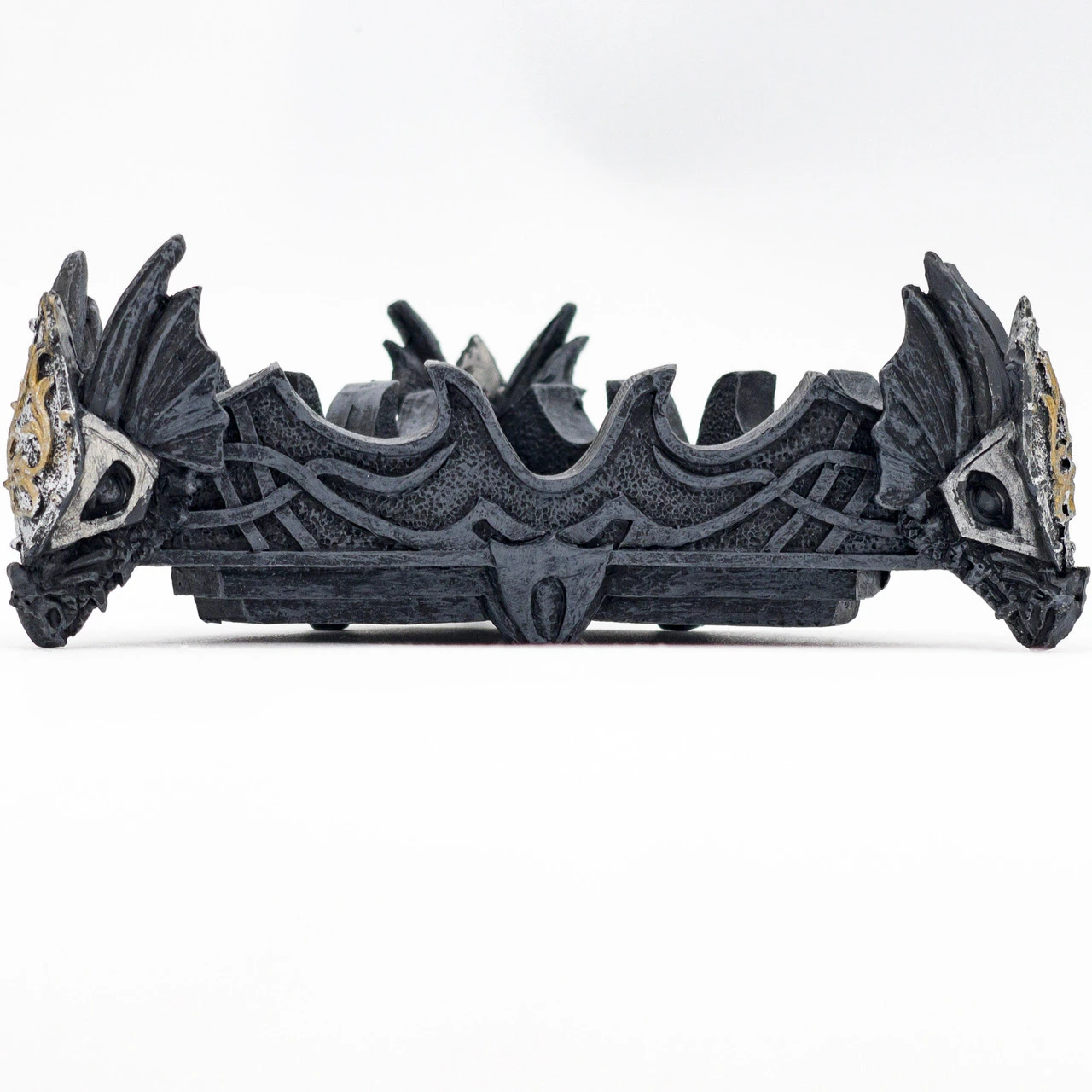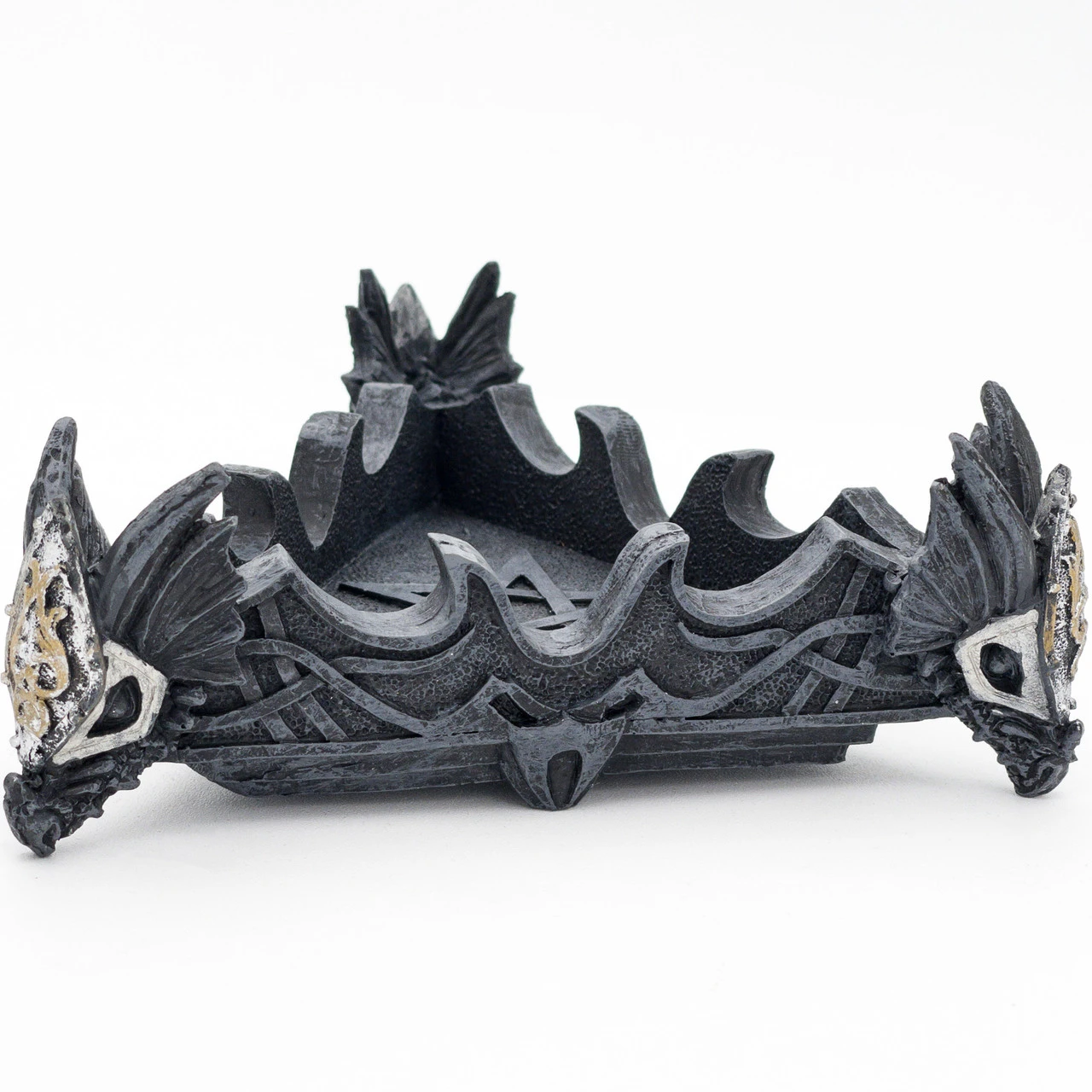 Deep, stone gray and seething; the arena is waiting for you. The Arena of Basilisk Novelty Dragon Themed Ash Tray is a triangular ash tray with armored dragon heads on each corner and an ominous pentagram in the center. Intricately detailed, this resin ash tray features flame-like spires on each side of the triangle with architectural lines on the sides. Each and every crease and bone line in the dragon’s head is vividly sculpted and shadowed resulting in an unbelievably dramatic piece. Even the bolts in the dragons’ headpieces are emphasized and the stunning silver of the armor with gold detailing accents is hypnotic. Any dragon fan or collector will love to step into the arena of basilisk but, of course, the doors to the arena will not stay open forever. Side Length: 5 Inches Each. Weight: 0.5 lbs.