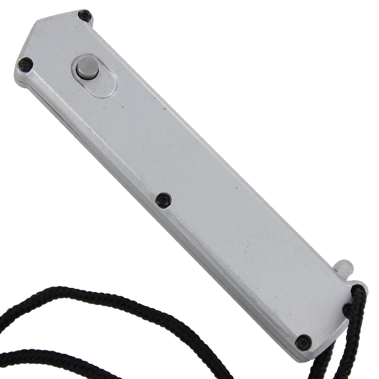 Made of high quality materials this knife gives you maximum bang for your buck. The sleek smooth handle feels great in the palm of your hand. Constructed out of durable aluminum with a lanyard hole at the end this beauty is off the charts. The spear point blade has a single edge which is used for piercing and slicing. Just press the release and pull down on the subhilt to reset the blade. Then hit the button and watch this baby fly at supersonic speed. How awesome? With this knife we deliver innovation, value, and dependability. And with a steel pocket clip and nylon cord, how could anyone say no? Overall Length: 8.25 Inches, Blade Length: 3.5 Inches