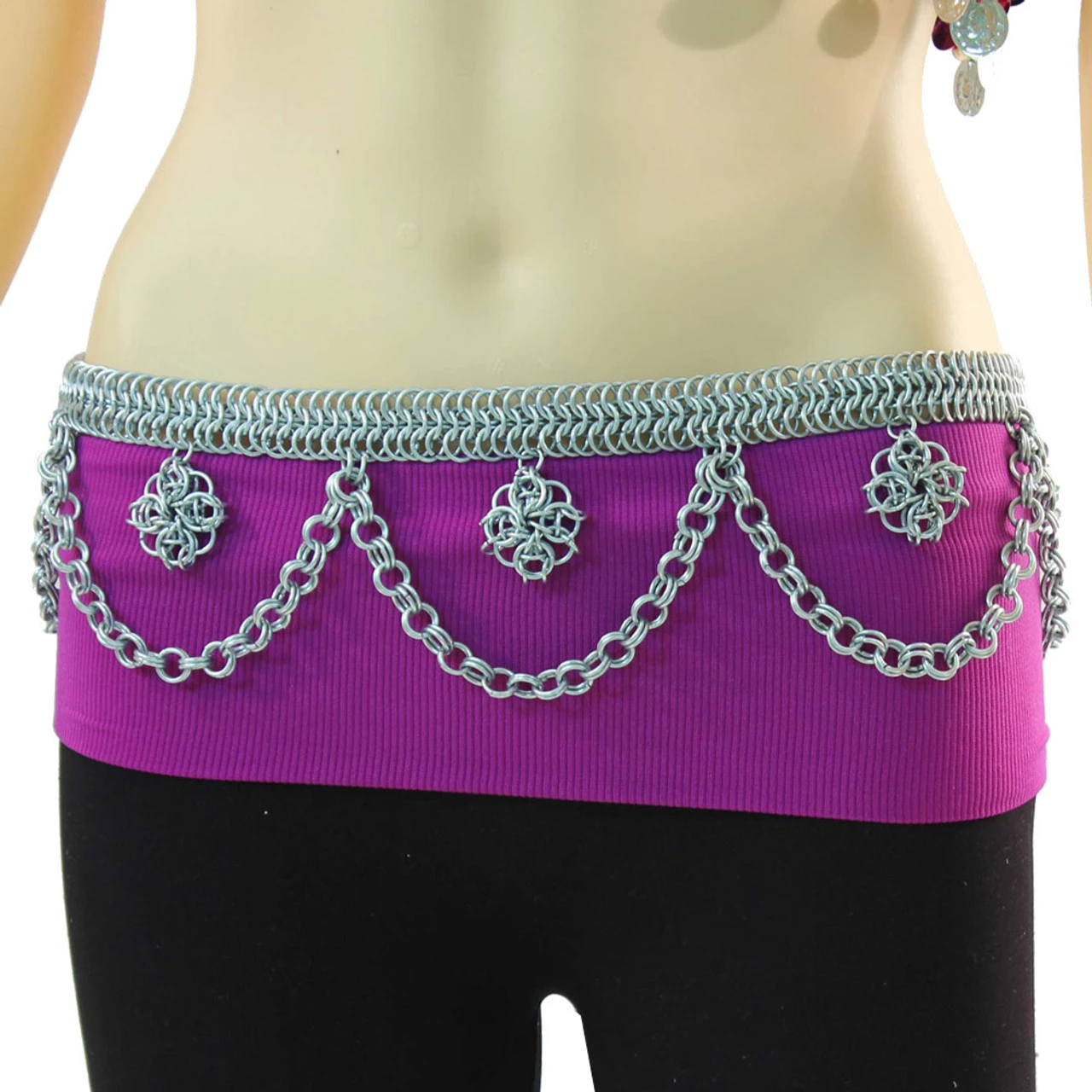 Our Belly Dancing Chainmail Belt is constructed is real chainmail links with a floral fringe design. This belt is 48 inches in length but you can adjust it to your correct size by opening the linking taking off the excess and re-closing them.