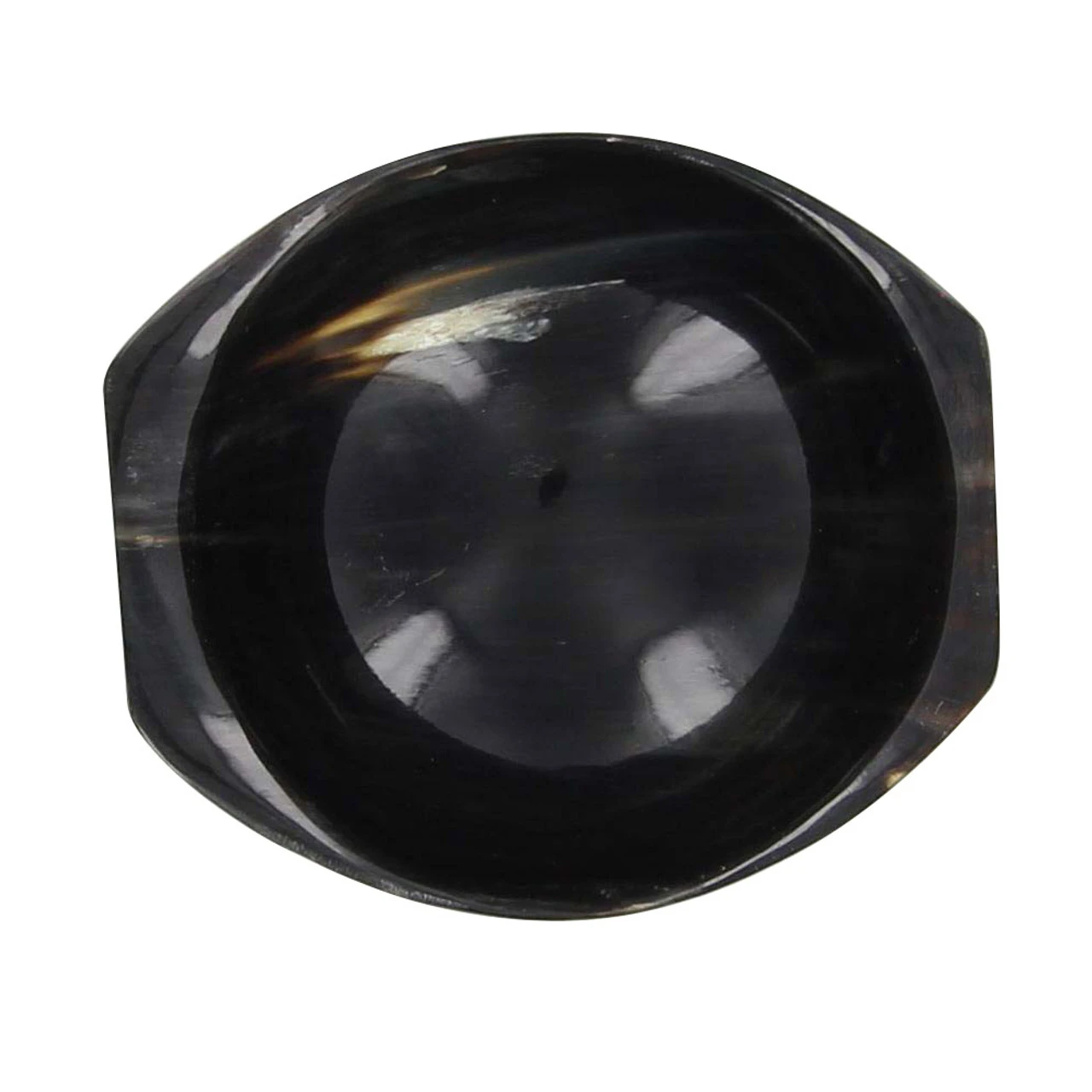 Hand carved from a solid buffalo horn, this Renaissance Bowl holds up to 24 fluid ounces. The edges sport flat handles, true to their original design. A flat area is carved to the bottom of the bowl, keeping it balanced on a flat surface. The surface is hand polished to a beautifully reflective shine. Please clean the bowl before using. Overall Length: 7 Inches. Fluid Capacity: 24oz. Material: Natural Buffalo Horn.
