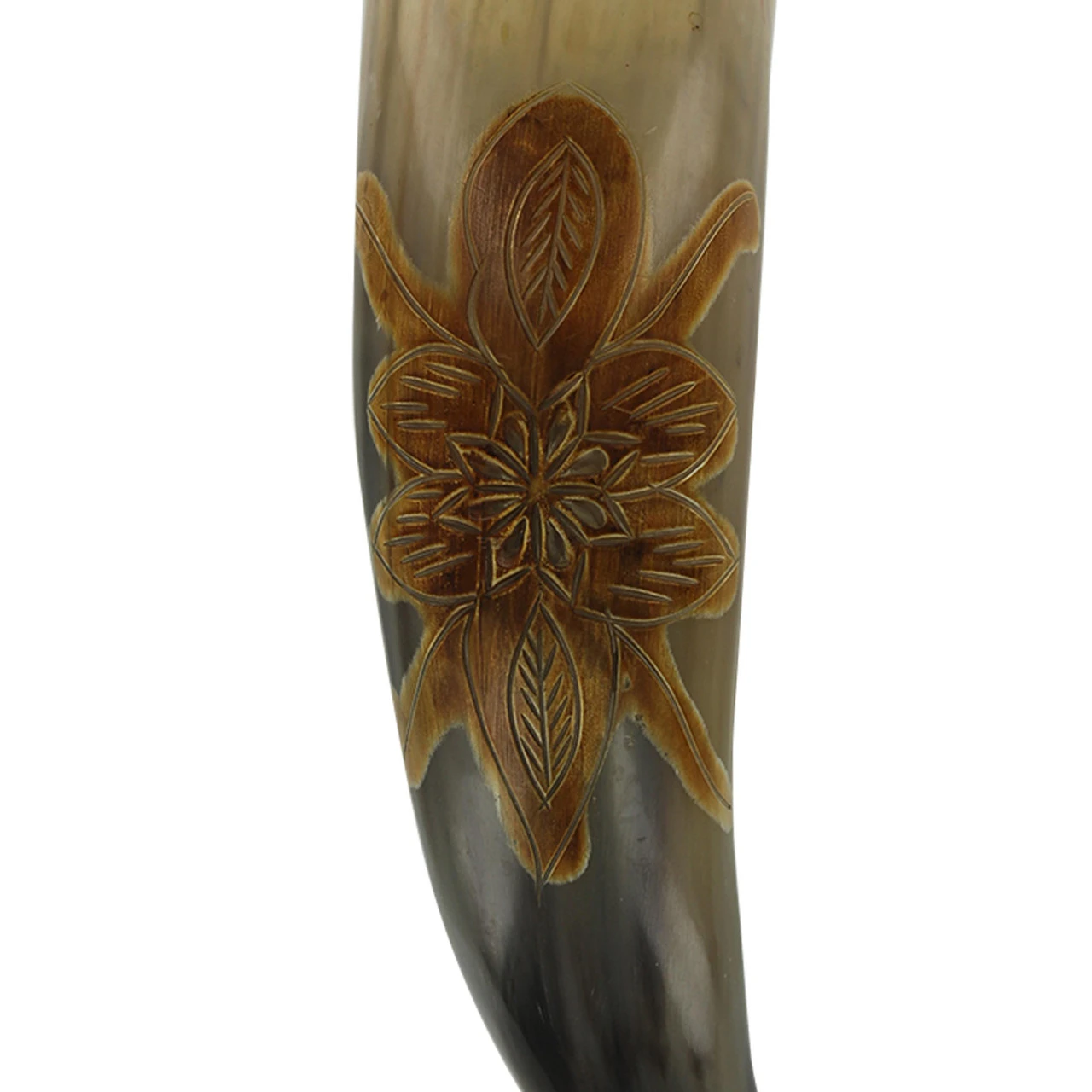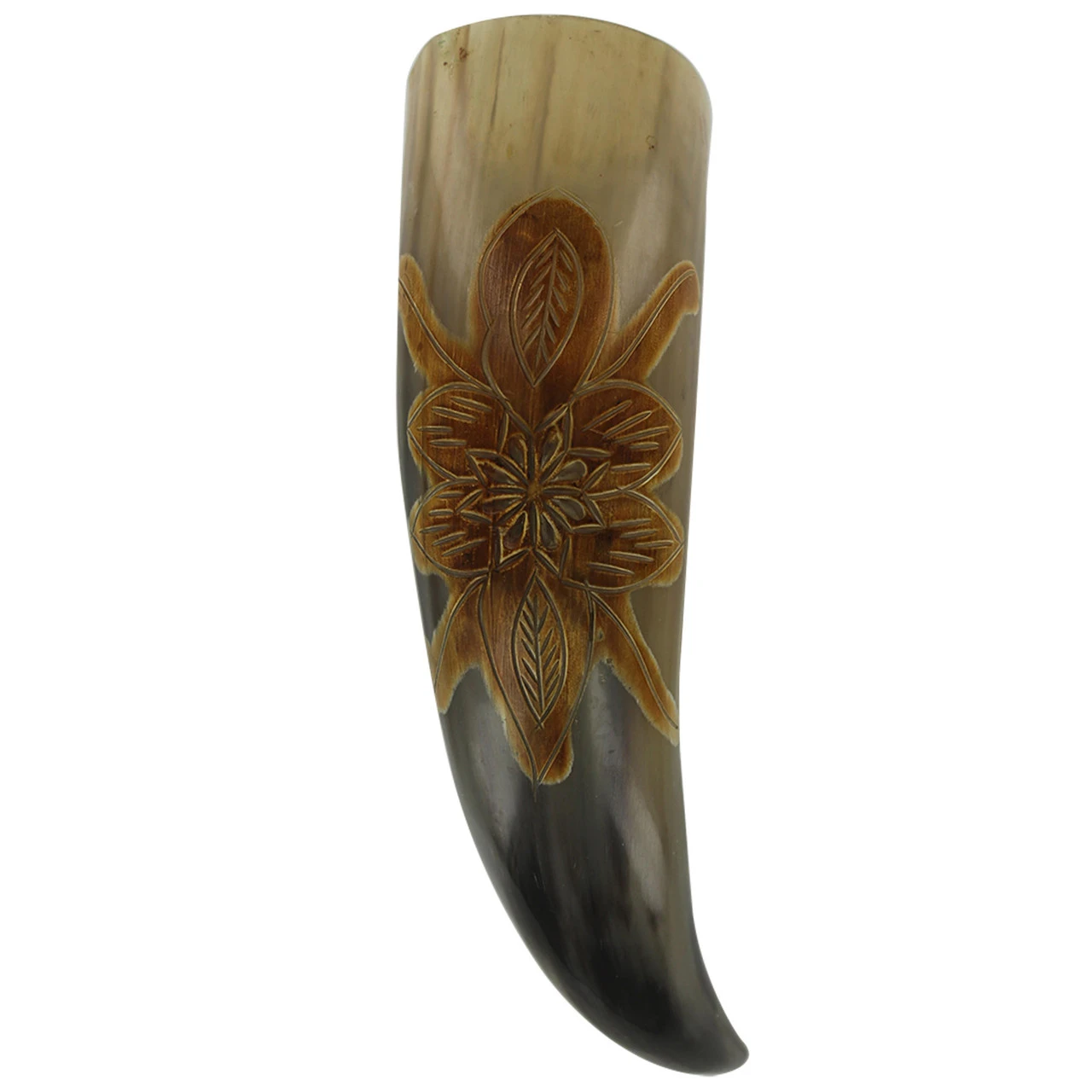 * Please not there may be a slight odor as this is a natural item. The color and shape may vary and may not be exactly like the picture. Item may have minor scratches due to buffing and natural material. When measuring this item we measure it at the spine. This is an all-natural item and you will need to coat inside with beeswax. In order to do this you will melt the beeswax and pour it in the horn. Wait for it to dry and then pull it out. Please wash with a gentle detergent and polish with vegetable oil to keep it from drying out. And from time to time you will want to use beeswax to coat the inside to keep from cracking. Please do not use hot liquids in this item.