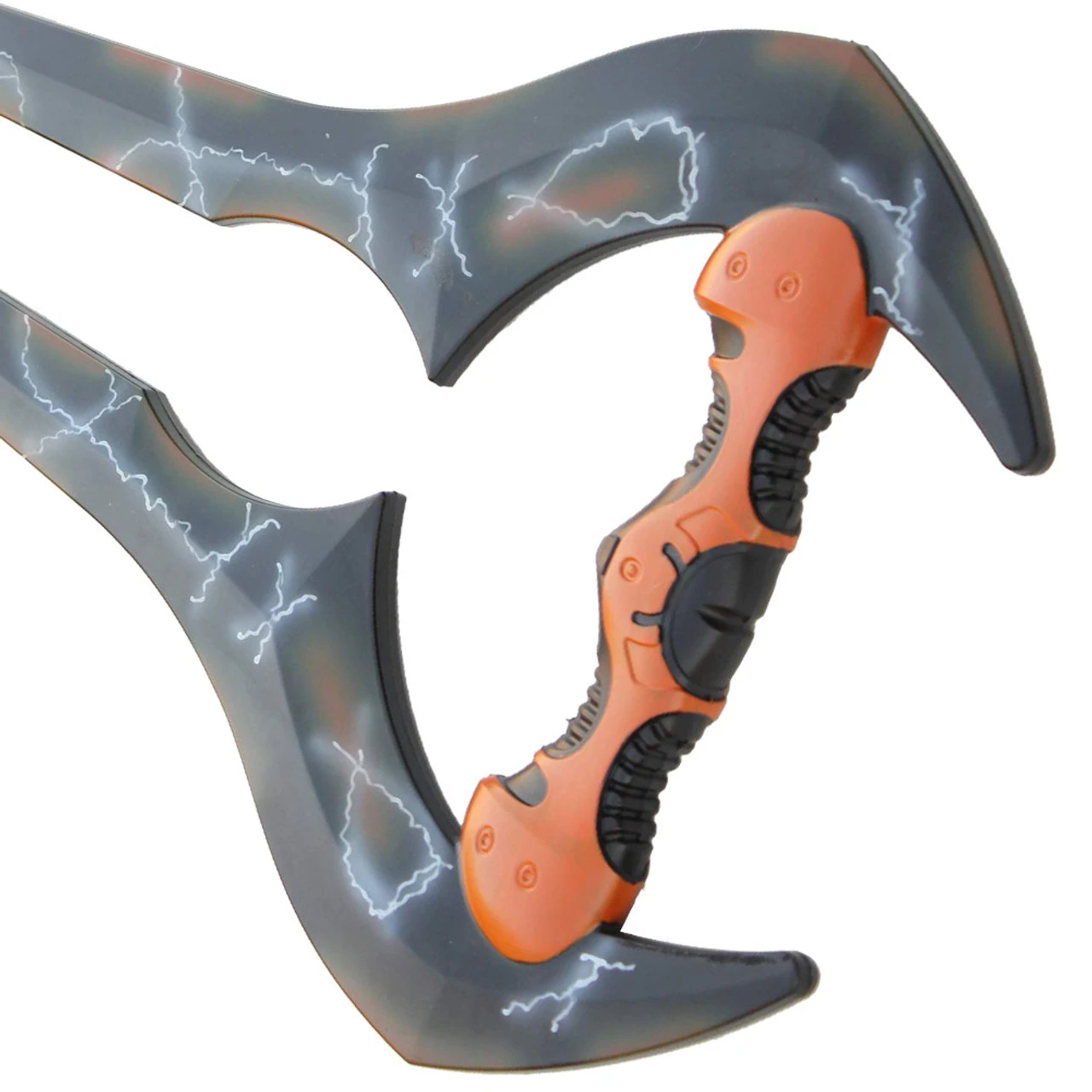 Lunge into attack mode with our Cosplay Foam Vorpal Energy Weapon; use this replicated sword to complete your costume for the next convention or Halloween! The actual blade is composed of two partially ionized ‘blades’ of free moving electron based gas held in a blade-like form by two small magnetic-field generators built into the handle of the weapon. This forms and contains the oval shaped, ionized blades for which the weapon is recognized. This foam version is the vorpal style with its black and orange coloring and its plasma charges shown on the blades.