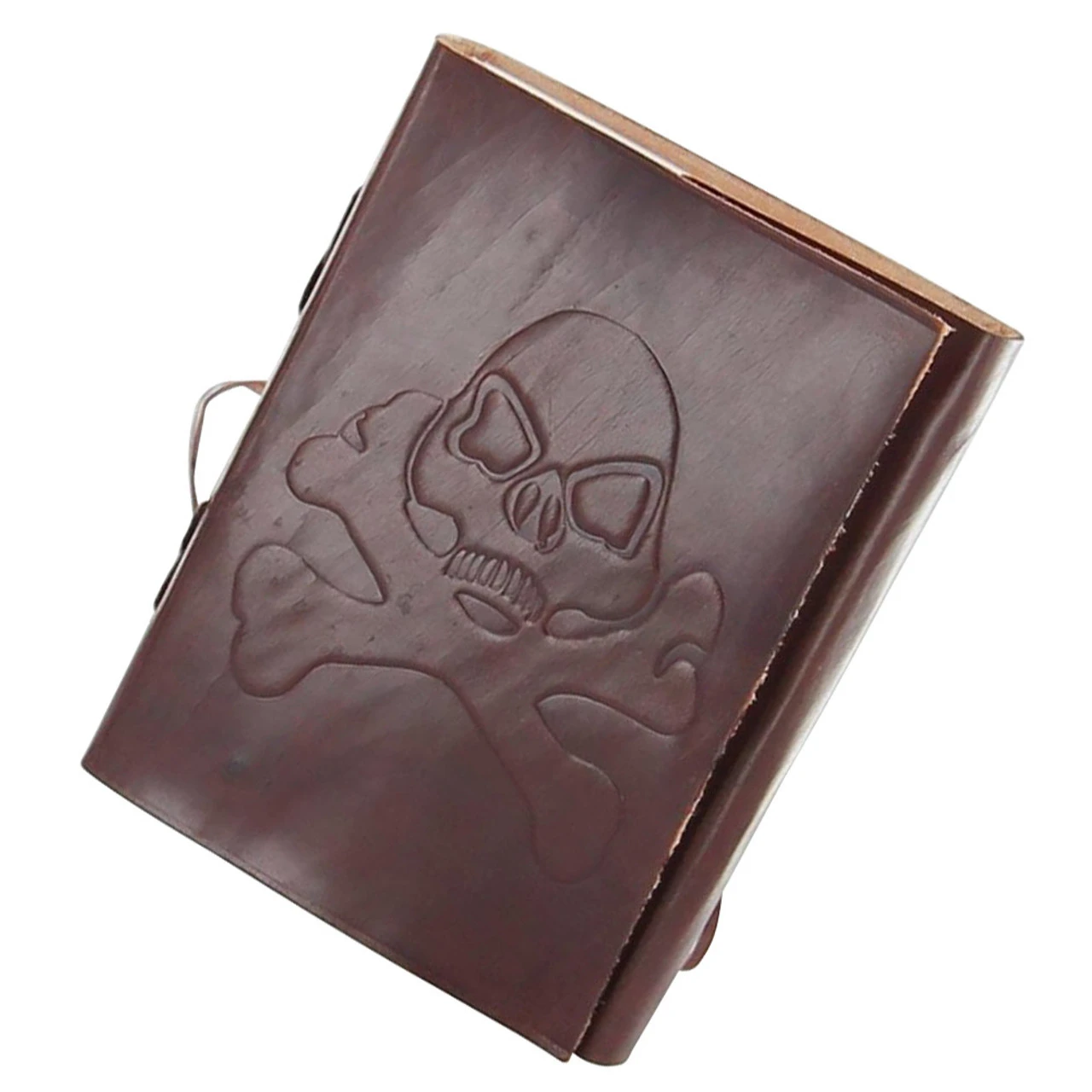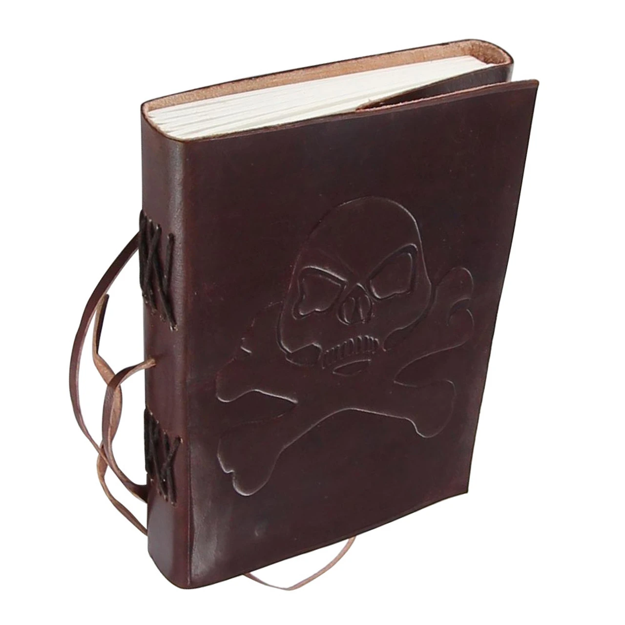 Jot down the account of all your adventures or keep count of your booty with the Handmade Jolly Roger Booty Log Journal. The paper used in this leather journal contains handmade ‘khadda paper’, made from recycled cotton also known as ‘kaddi’ or ‘khaddi’ that has been left over from the massive garment industry in India. The pages are held together with brown stained string which offers a unique X design on the spine. They are handmade and don’t contain any chemicals as we only use unbleached cotton. It has been handmade for a vintage authentic look. The outside is genuine brown leather an embossed Jolly Roger is featured on the front cover. Capture firsthand accounts of your legacy, hand drawn maps of islands you have ravished, and ships because after all you are a pirate. Keep your adventures tucked away safely with leather bound closure.