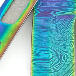 Mutation Warning Balisong Flipper Butterfly Knife | Titanium Damascus | Drop Point Blade