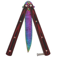 Rainbow Warrior Sunrise Butterfly Knife | Titanium Damascus | Drop Point | Holster Included