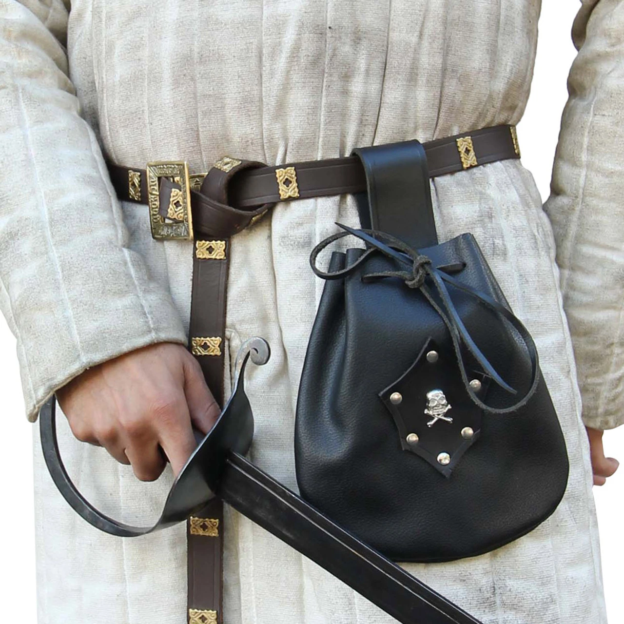 Sometimes being a marauder is a tough job. Always at sea and roaming from port to port; just seems like you are always on the go. Besides your sword and the clothes on your back you have very few belongs but how to keep them with you at all times? Maybe you should try the Leather Sea Rover Pirate Handmade Pouch. It is constructed completely out of leather and handmade. The belt loop can fit a large pirate belt or sash and there is an awesome yet fearsome Jolly Roger emblem on the front. I mean as a Pirate you have to mark all your belongings with a Jolly Roger so everyone will know you are a rough and dangerous scallywag. Actually, come to think of it this pouch may be too good for a Pirate. I mean it is hand sewn with steel studs and a decorative emblem. Yeah, too good but whos to say Pirates cant have nice things. So if you are a Pirate who fancies the finer things in life the Leather Sea Rover Pirate Handmade Pouch is just the pouch for you.