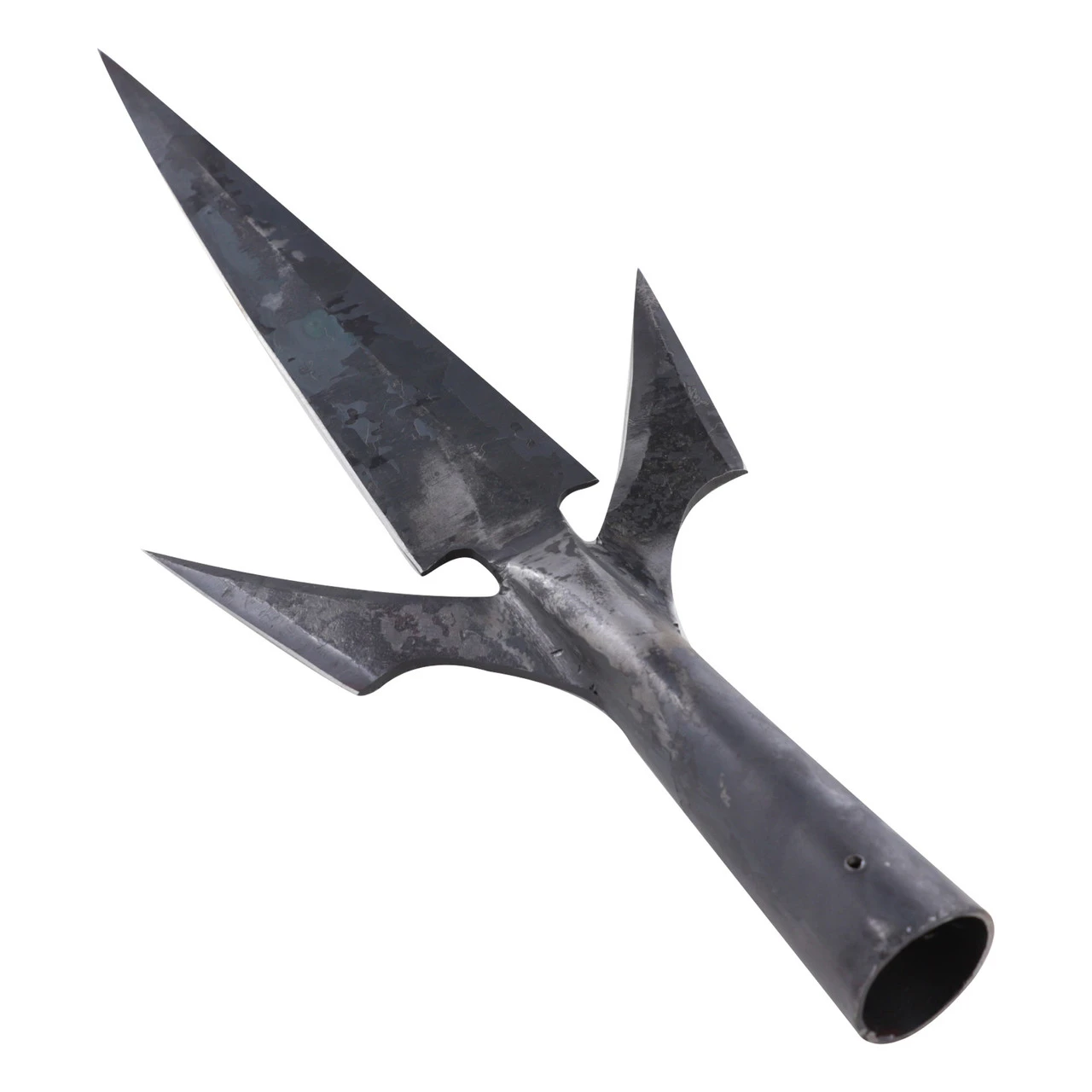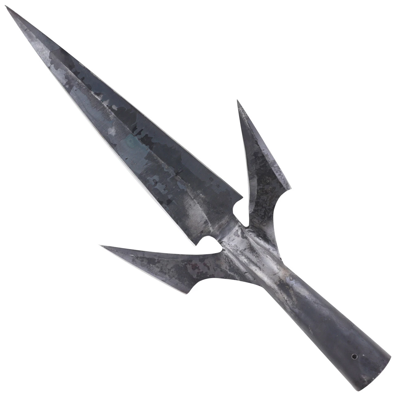Hand forged from high carbon steel and given a roughened antiqued finish for authenticity, this replica 16th century Corseque not only serves well as a great prop for medieval costume, but is also fully functional and is perfect to use for events such as HEMA & SCA. This is a long spear style head with a 10-inch central blade that has two smaller blades (known as wings or flukes) protruding from either side. The 4-inch socket is pre-drilled to allow you to easily connect a wooden shaft of your choice to create your own custom piece for all your reenactment needs. This Corseque comes well oiled – and it is recommended to polish with a mineral oil from time to time to prevent rusting or corrosion. Overall Length: 16.5 Inches, Blade Length (Main Blade): 10 Inches, Blade Length (Fluke): 4 inches