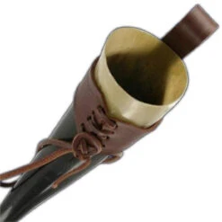 Fire Burned Medieval Drinking Horn With Brown Leather Holder