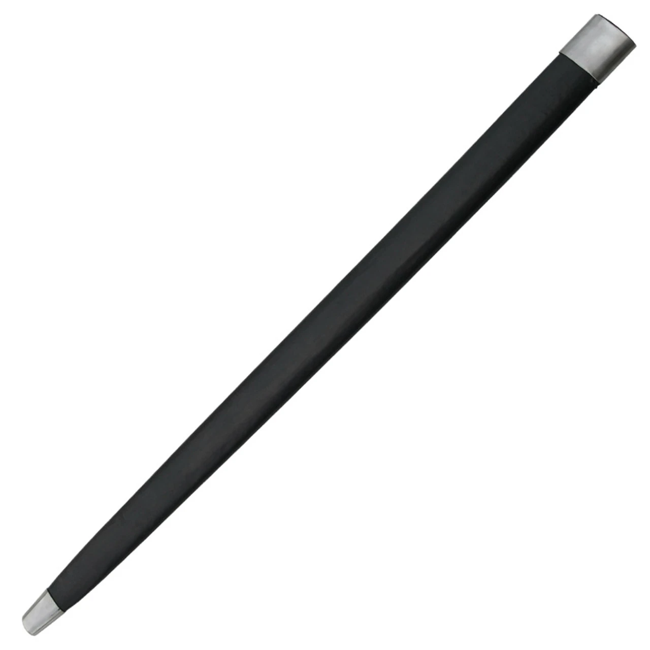 The Middle Ages was an extremely violent era in history featuring battles in both Europe and the Holy Land when the crusades, and the crusaders who fought them, were numerous. Medieval swords were the primary weapon of the knights. A knight was expected to protect those less of lesser rank than him and to hold himself to the highest standards of combat. Wherever a knight went you would find his sword at his side. A knight and his weapon were inseparable. This medieval sword is made from carbon steel with a straight cruciform cross-guard and semi-circle pommel. The grip is wood that has been wrapped in rexin. A fuller runs down the middle almost the entire length of the blade. This sword is full tang and battle ready with a peened pommel. Peening is the method historically used for most of the pre-industrial era. It fixes the pommel permanently to the tang. This durable blade is strong and ready for re-enactments or tournaments. Included is a wooden scabbard with a rexin wrap and steel locket and chape. Overall Length in Scabbard: 40.25 Inches.