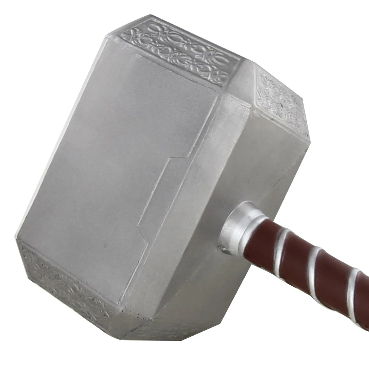 Mjölnir is depicted in Norse mythology as one of the most fearsome and powerful weapons in existence, capable of leveling mountains. This hammer is his primary weapon of the God of Thunder who protects Asgard. Thors Hammer as an Instrument of Blessing, Consecration, and Protection but it was certainly a weapon, their best weapon in fact but it was more than just a weapon. It also occupied a central role in rituals of consecration and hallowing. This hammer is made of Polyurethane Foam with a 10mm inner core which is much stronger that PVC. The handle is painted to simulate wrapped leather. Grasp Mjölnir in your hand and protect Asgard from the giants that would bring chaos to the land.