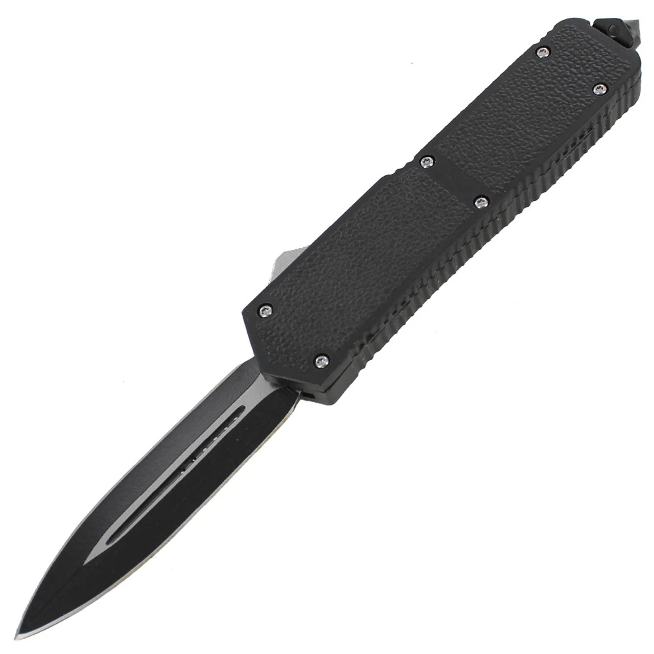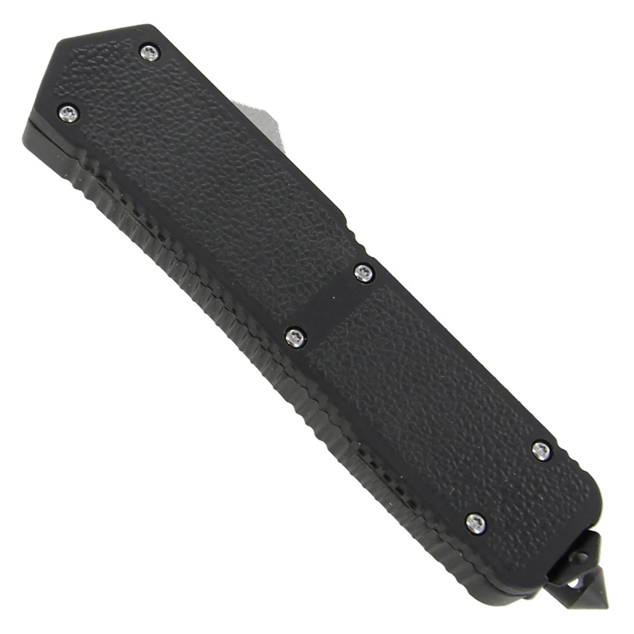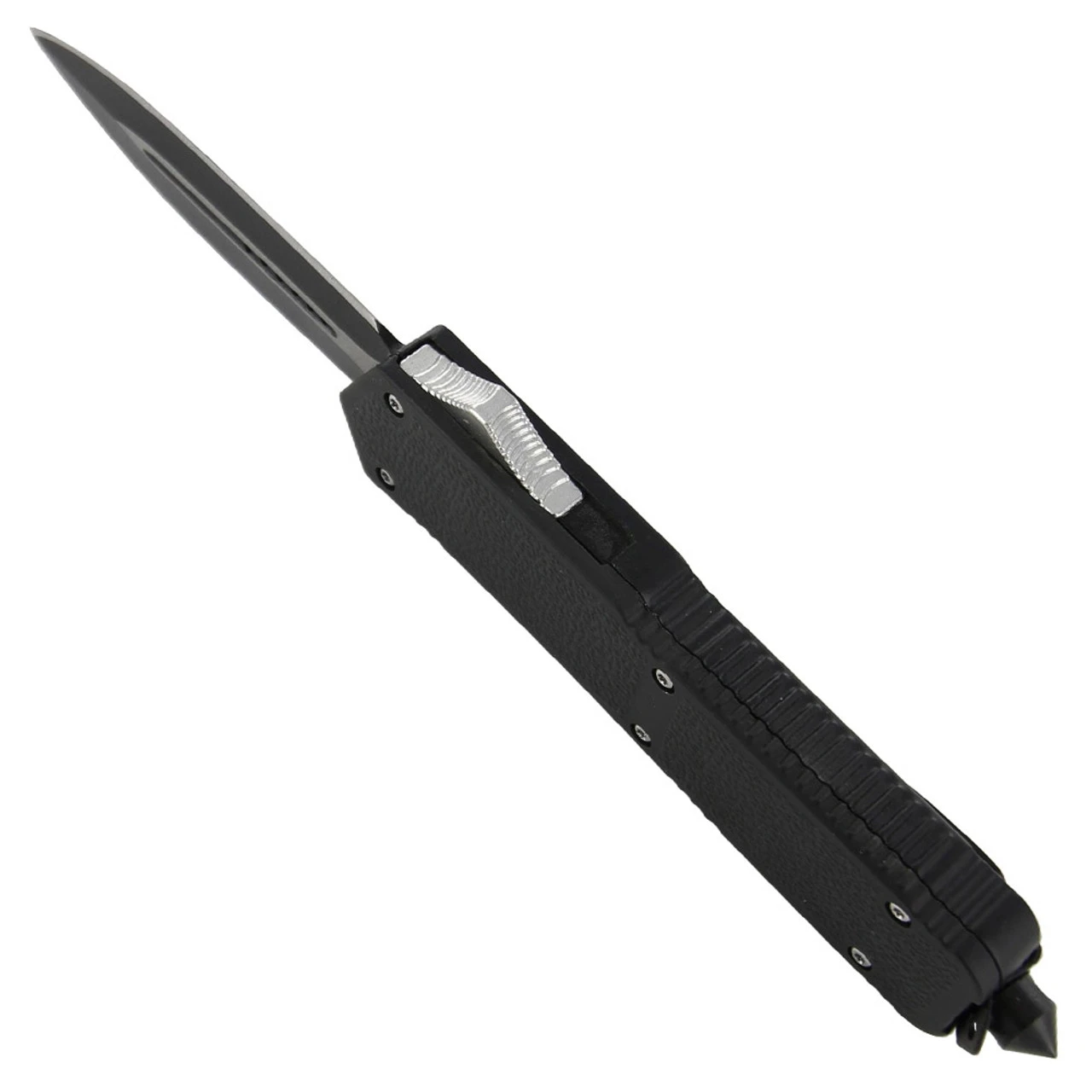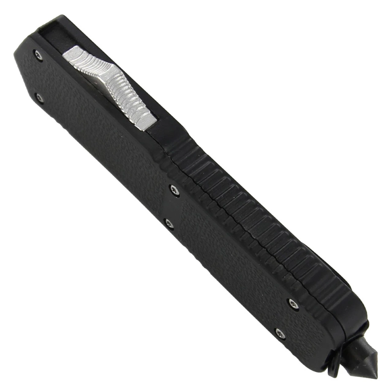 This high testosterone blade is designed to push the limits of your average pocket knife and who could ask for more. This knife has it all.durability, rugged appearance, fast deployment, and emergency/tactical features. The two toned spear point blade is constructed of stainless steel and deploys smoothly out the top of the handle. The handle casing is textured for a firm grip and made from zinc aluminum. A glass breaker is provided for emergency situations with a steel pocket/belt clip for your convenience. You can really feel that this knife has a great weight to it and it feels just right in the palm of your hands. Overall Length: 8.50 Inches, Blade Length: 3.25 Inches