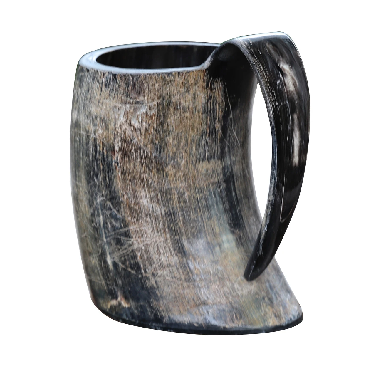 This horn tankard will surely help you wet your whistle, and then some! This horn mug is carefully hand-made from a single piece of buffalo horn which has been patiently cut to the right size and then heated and properly shaped before finally receiving its thick resin base. And of course, after that it has been fully cleaned and then polished and sealed inside so it is completely safe to drink from. With this XXL drinking horn tankard, the party never stops! Since this horn holds up to 38 ounces of your favorite cold beverage, your drink will seem bottomless. When not in use, you can set it up as a neat display or keep it safe in our complementary “The Hooded Raven ™” canvas bag. Great gift choice for any Norse Culture enthusiast. Hand-made from a single piece of real buffalo horns from India. Ethically harvested: no living animal has been hurt in the process. Size: XXL, Will Hold Approximately 37.2 fl oz *Please wash with a gentle detergent and polish with vegetable oil to keep it from drying out. And from time to time you will want to use beeswax to coat the inside to keep from cracking and the inside drying out. Do not fill with coffee or other hot beverages. Do not put in the dishwasher. Please remember this is a natural item and each piece is unique.